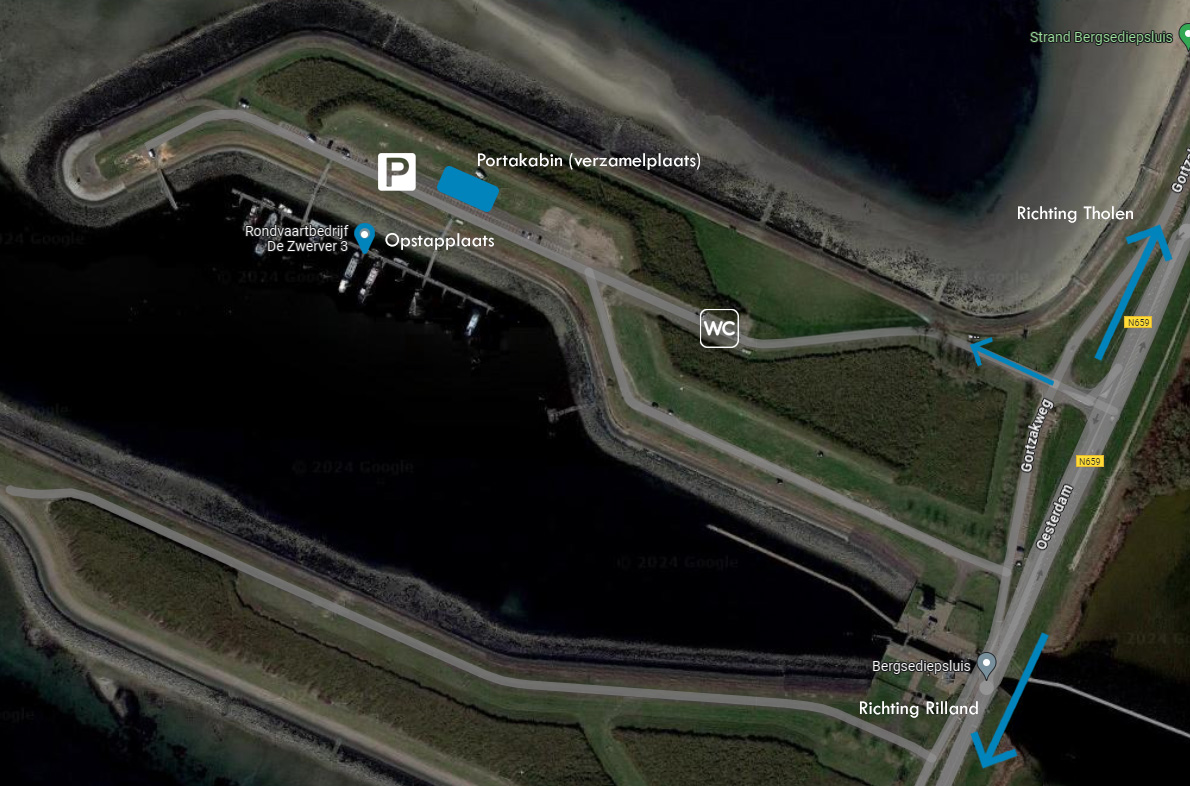 Alle excursies vertrekken vanuit de haven bij de Bergsediepsluis in Tholen.